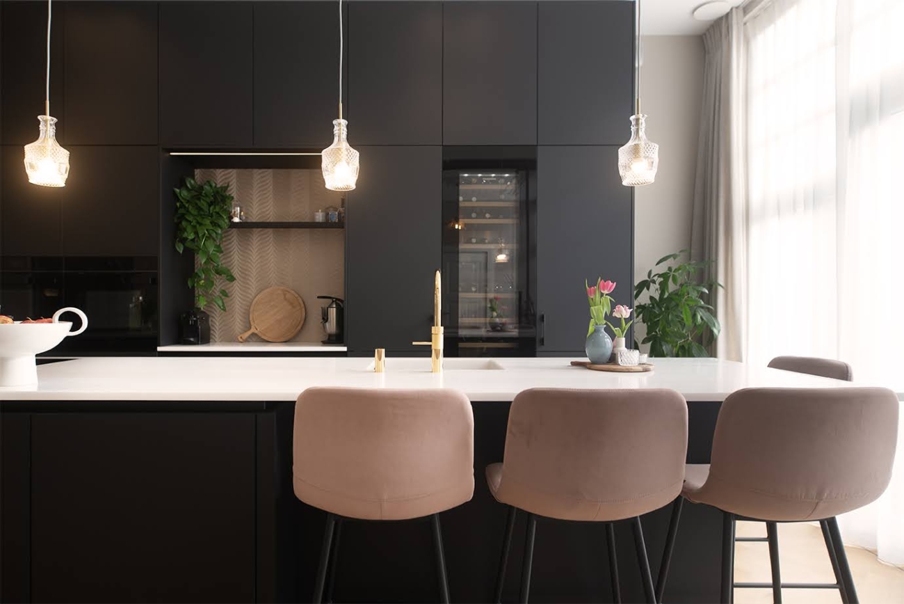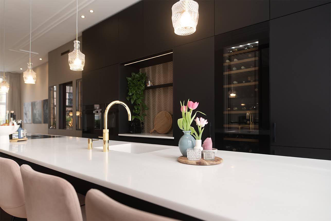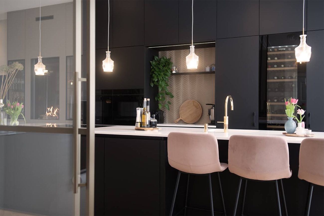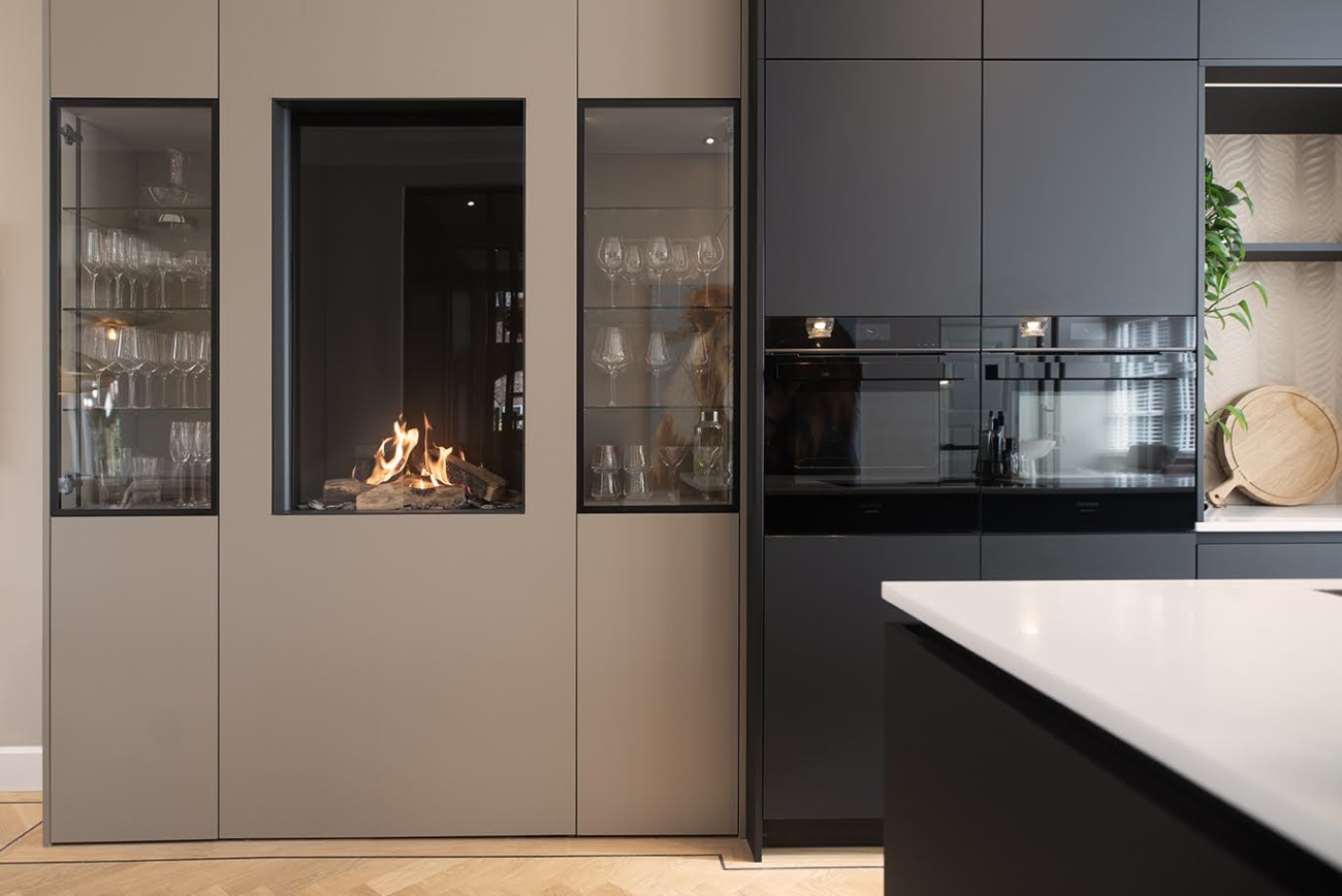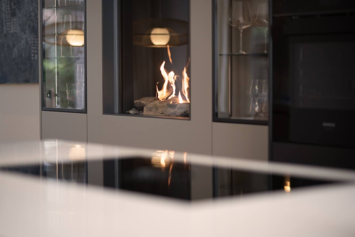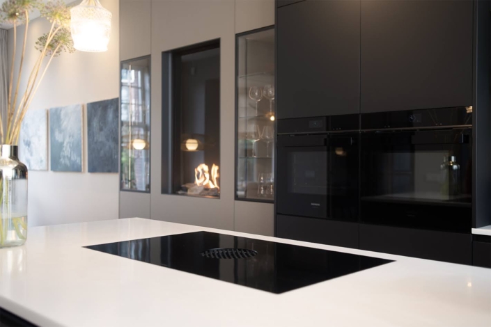 Luxe maatwerk keuken met kookeiland en doorkijkhaard